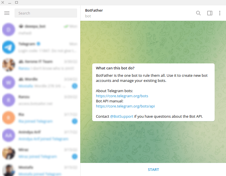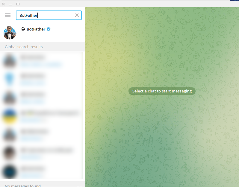 To build a Telegram bot with WhalyBot, first, open your Telegram App. Then in the search bar of the app, search with the ‘BotFather’ keyword. Then select the verified BotFather account.
