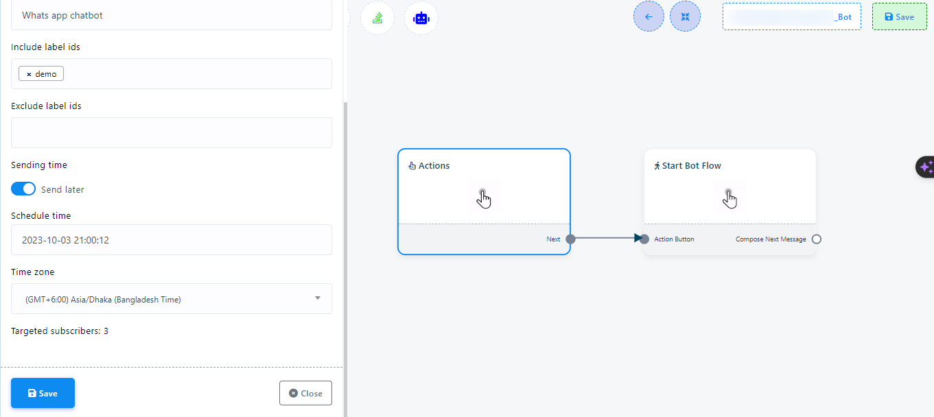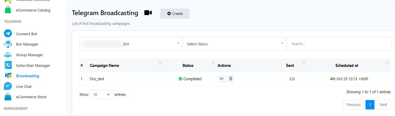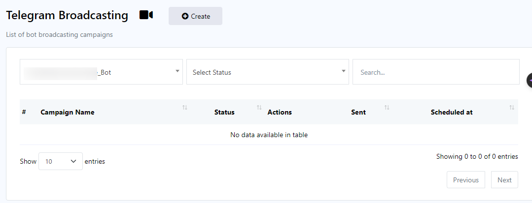 - Seleccione un bot para enviar un mensaje de difusión desde el menú desplegable.